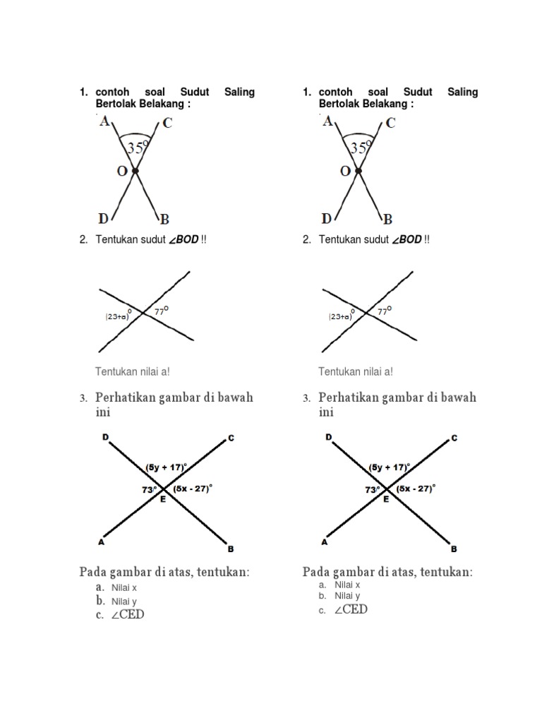 Maretong Soal Dan Pembahasan Garis Dan Sudut from 1.bp.blogspot.com Maybe you would like to learn more about one of these? Contoh soal sudut bertolak belakang kelas 7. Check spelling or type a new query. We did not find results for: