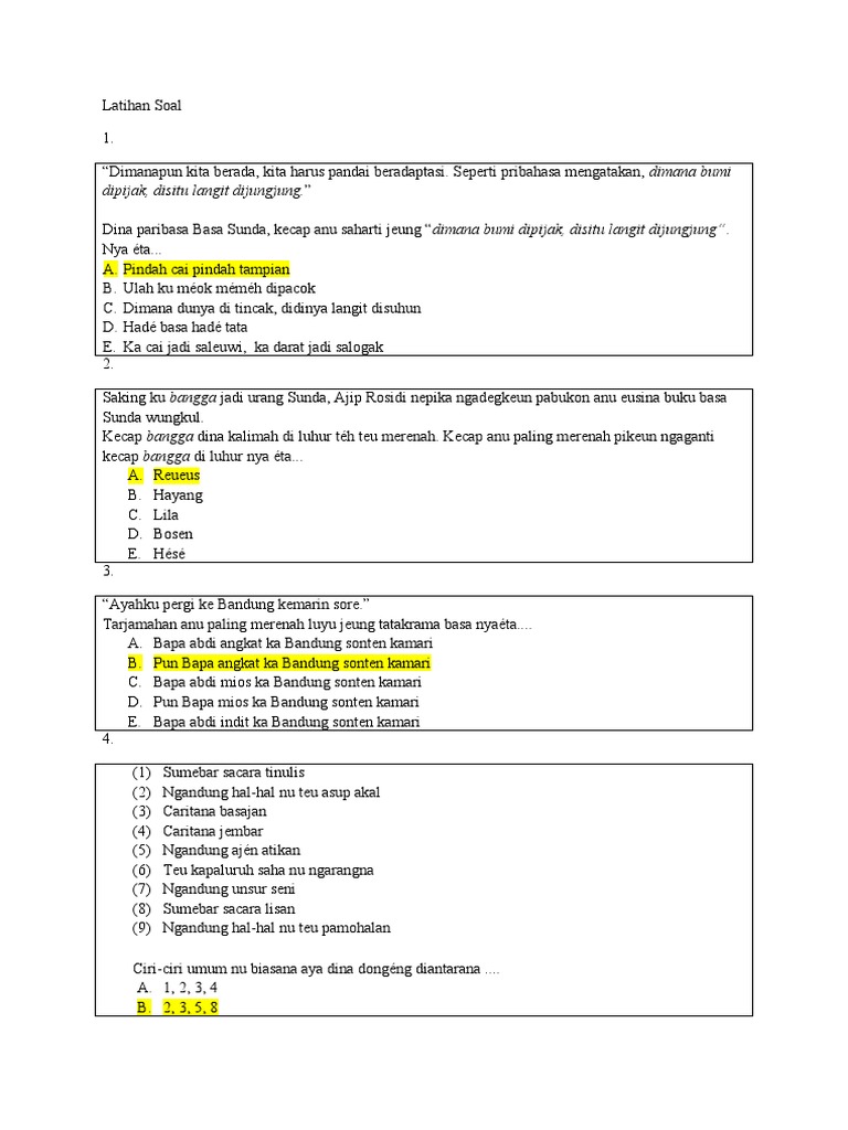 Tangtu bae lahirna ieu sajak dibarengan ku pangalaman, sikep, jeung suasana batin panyajakna. Sempalan dongéng ieu di handap kagolong kana wangun fabél nyaéta…. 03 dihandap ieu anu teu kaasup kana nyarita wangun dialog nya éta… a. Sing tabah, nya, urang mah jalma teu boga. 3.dumasar kana sipatna, sisindiran teh bisa dibedakeun jadi tilu rupa, nyaeta.